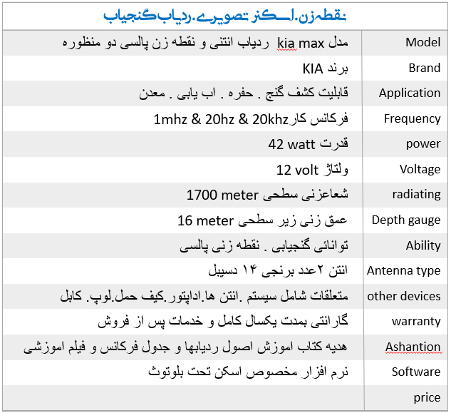 * داشتن برد فلزیابی در حد نهایی مدارات پالسی موجود در عین حساسیت حداکثری به فلز طلا با توجه به امکان تنظیمات مختلف توسط اپراتور.